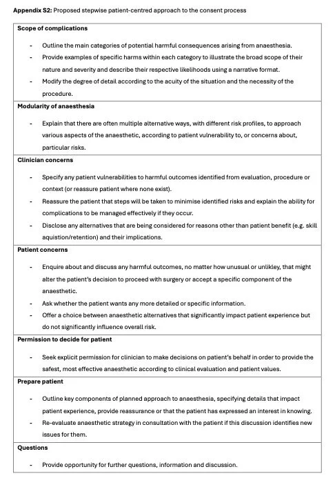 The following are supplementary tables from the editorial ‘The paradox of informed consent’ published in the journal Anaesthesia.